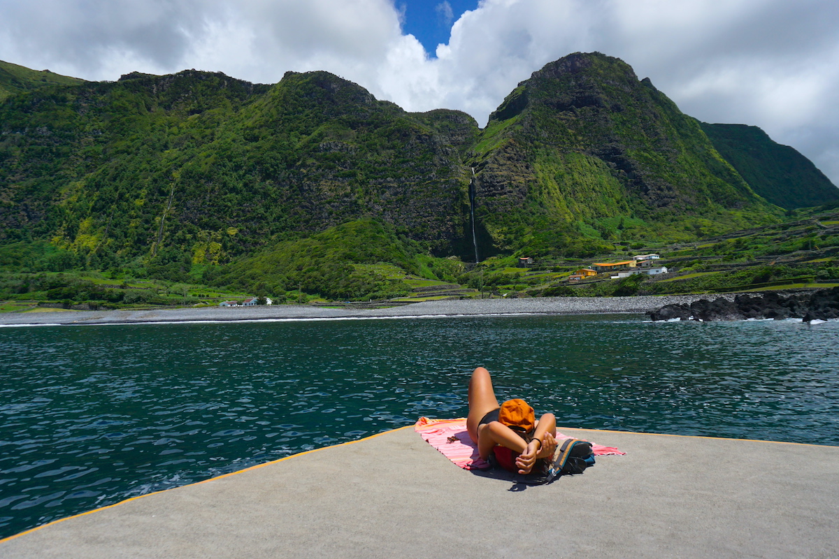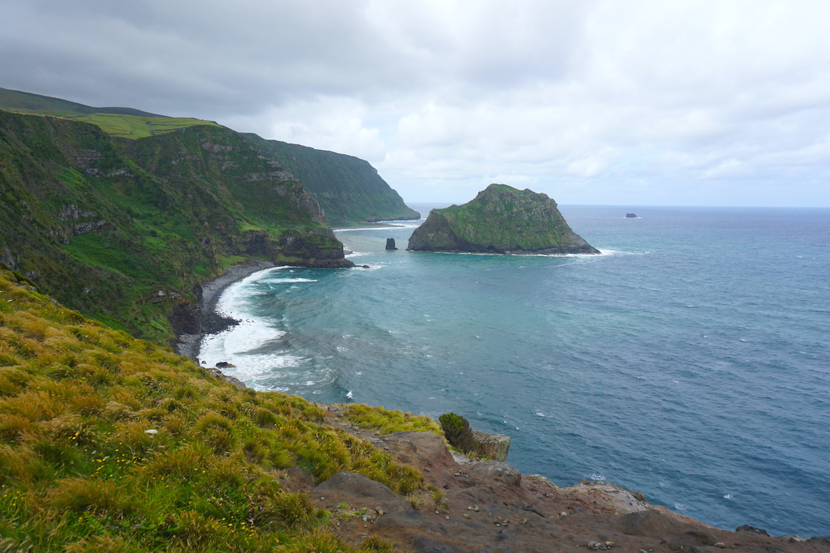 Fajã Grande es un espectáculo de naturaleza compuesto, por un lado, por una sucesión de cascadas bajando de un imponente acantilado para disfrutar a base de chapuzones o cerveza en la mano (la más deslumbrante del show, de la que te hablamos antes, Poço do Bacalhau) y, por otro lado, un Atlántico hasta perder de vista, o no sería esta la isla más occidental del continente europeo. Bueno, perdón, realmente el territorio más occidental es su islote, ilhéu de Monchique, que podemos avistar desde aquí.