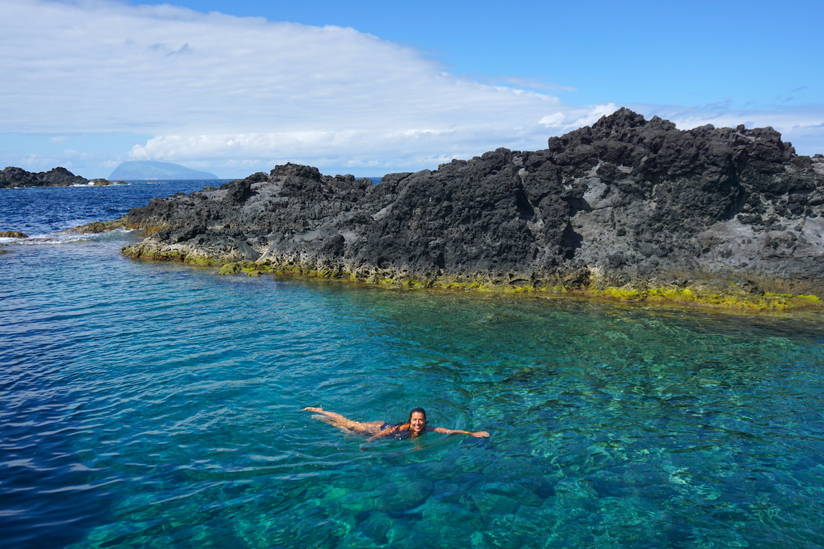 Todos los paraísos tienen un «pero» (los peroísos como nos gusta llamarles) y en este caso no iba a ser menos. Echa un ojo antes de entrar en el mar de Fajã Grande porque, sobre todo en verano, no sólo a los pececillos y a la gente les gusta bañarse por aquí, también a algunas medusas (aguasvivas) o, peor, alguna que otra carabela portuguesa (cuya picadura es dolorosa y peligrosa). No es que pase todos los días ni mucho menos pero el aviso queda hecho, tal y como lo hicieron en nuestro viaje. Te contamos más sobre qué hacer en el caso de qué te piquen en Recomendaciones para disfrutar de Flores.