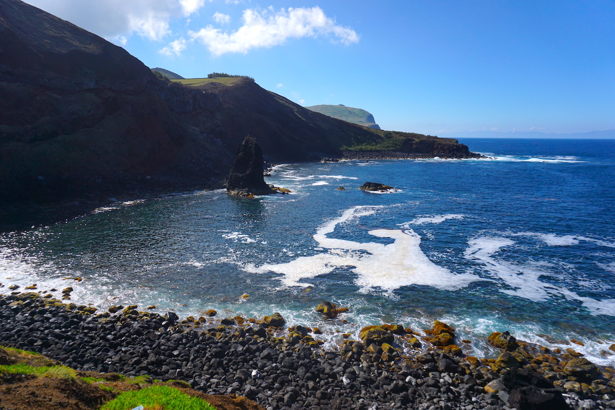 Uno de los miradores con las vistas más bonitas de la isla es el Miradouro Ponta da Barca ubicado en cima de las rocas volcánicas con vistas privilegiadas al islote con forma de cetáceo, el Ilhéu da Baleia (Islote de la Ballena).